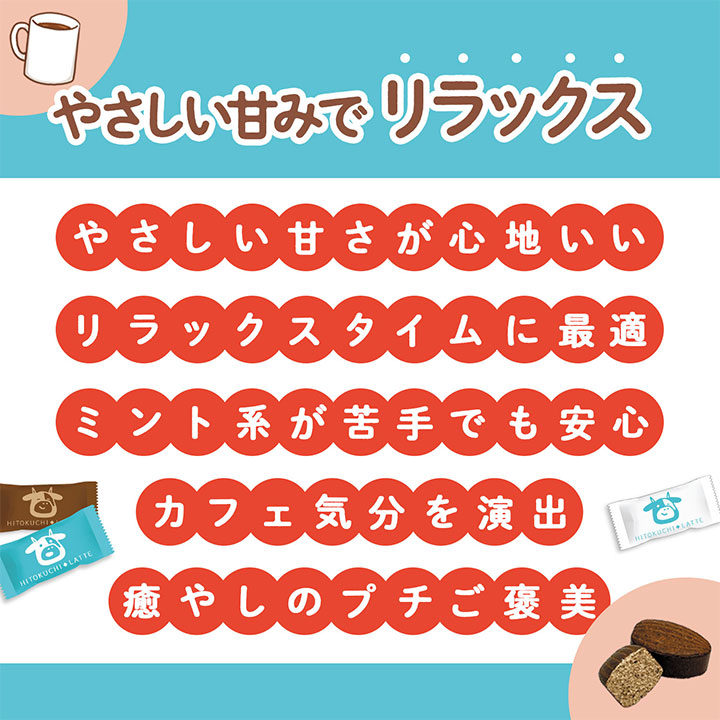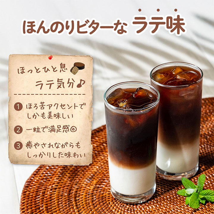 ほんのりビターなラテ味は、お仕事中の息抜きにもオススメ!