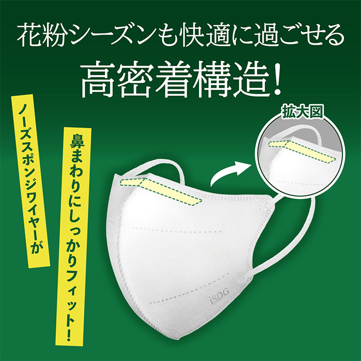 ノーズスポンジワイヤーで鼻まわりにぴったりフィット。