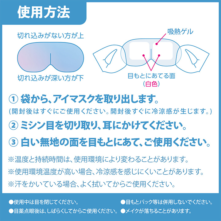吸熱ゲルが包まれた不織布アイマスクです。