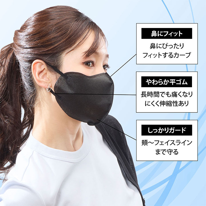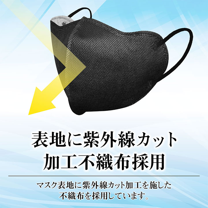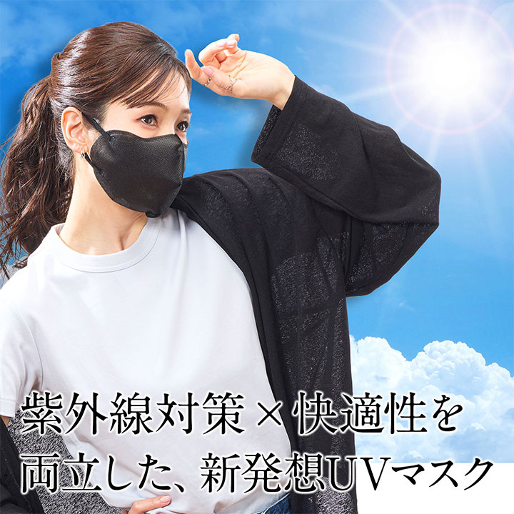 マスク表地に紫外線カット加工を施した不織布を採用し、日差しから肌をしっかりまもります。